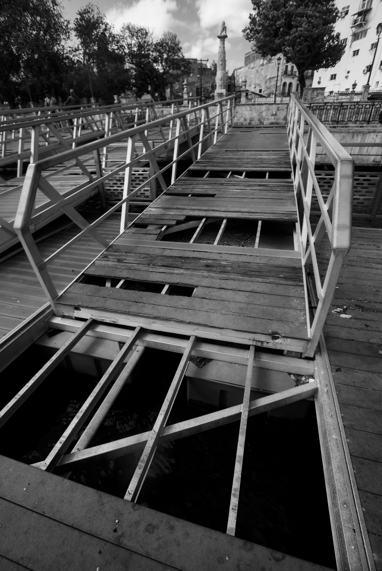 En los últimos cinco años, este privilegiado escenario del Casco Histórico se ha convertido en una prolongación vecinal, nicho predilecto para pescadores y bañistas improvisados, ambas actividades prohibidas como consecuencia del elevado grado de contaminación de la bahía, y en ausencia de vigilancia y control por parte de las autoridades. La corrosión que comienza a ser palpable en los ángulos visibles del pontón, añadida a la falta in crescendo del pavimento —sus componentes físicos lo hacen blanco predilecto para reemplazos constructivos en viviendas habitadas por personas de bajos recursos— y la colonización de escaramujos en los elementos sumergidos, colocan a esta isla flotante en franco deterioro. Una sentencia, escrita con tinta indeleble en el estrecho perfil de una de sus barandas, y que pareciera resumir el espíritu de estos tiempos, reza así: “Intenta respirar sin que te oprima el pecho, intenta hacer latir tu corazón sin que te duela el alma”.