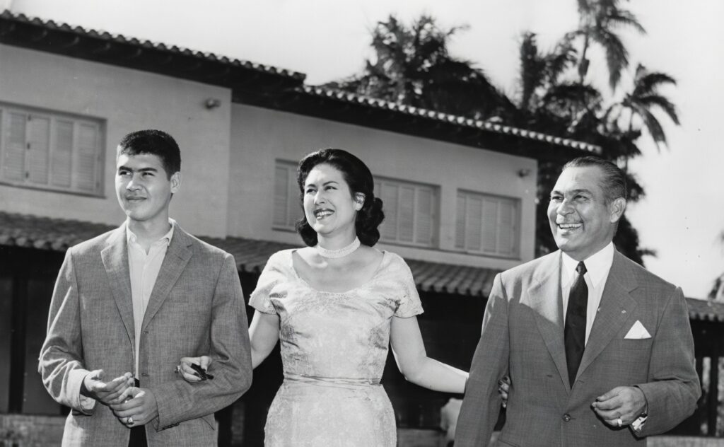 Batista junto a su esposa y su hijo en las afueras de la finca Kuquine.