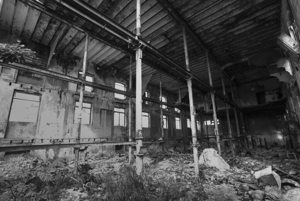 El interior del desahuciado paisaje industrial, es la encarnación distópica de su pletórico pasado.