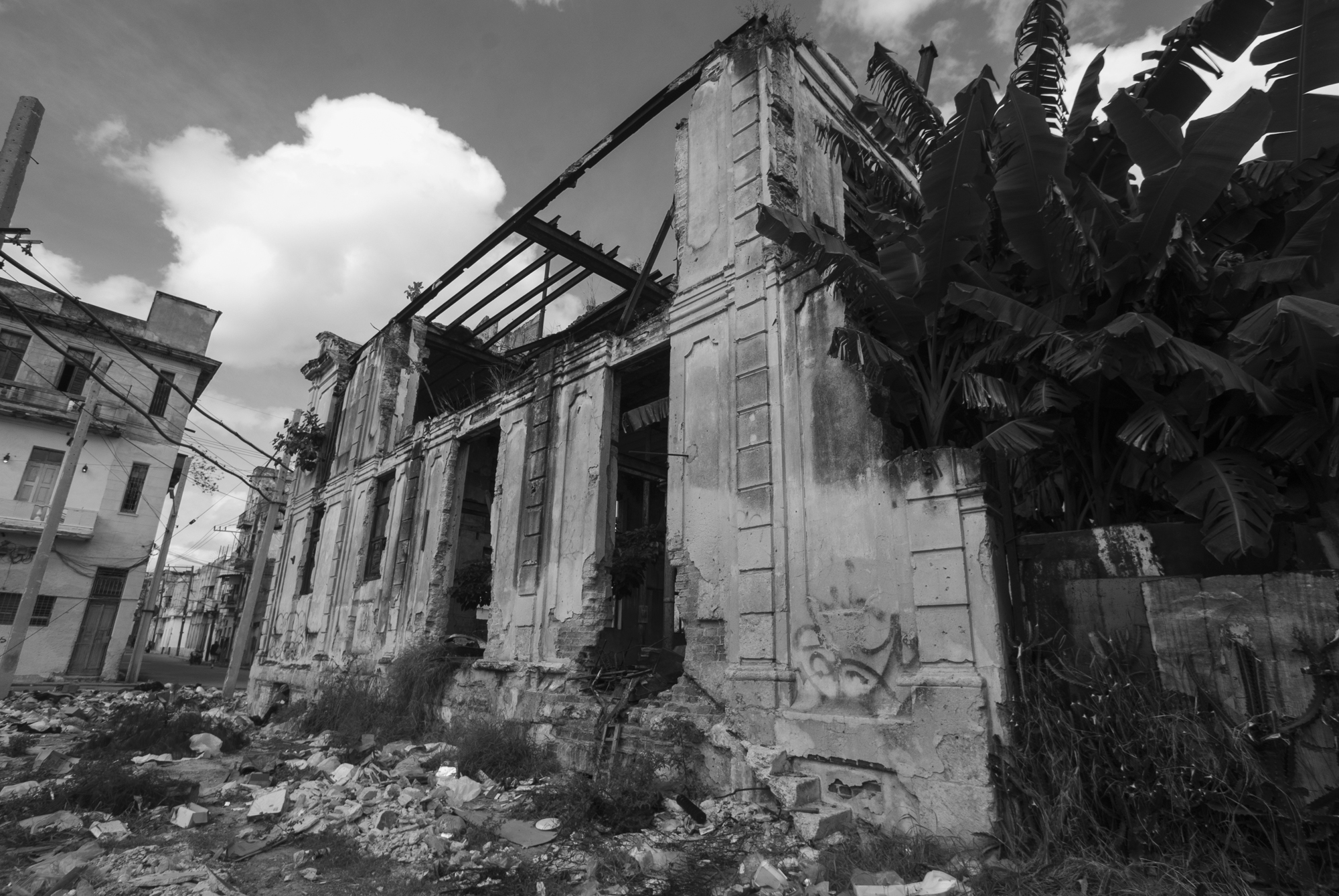 Los exteriores de la ruina son empleados por los vecinos para cultivar plátanos.