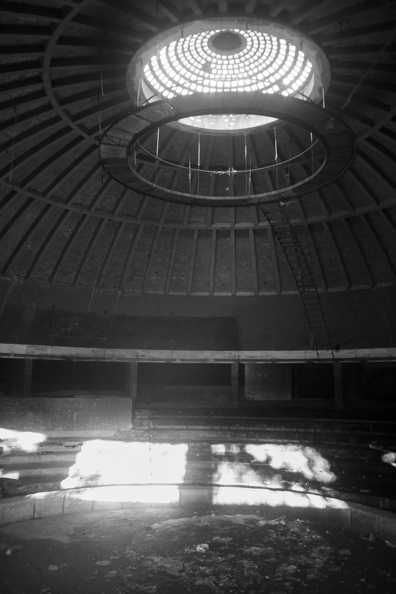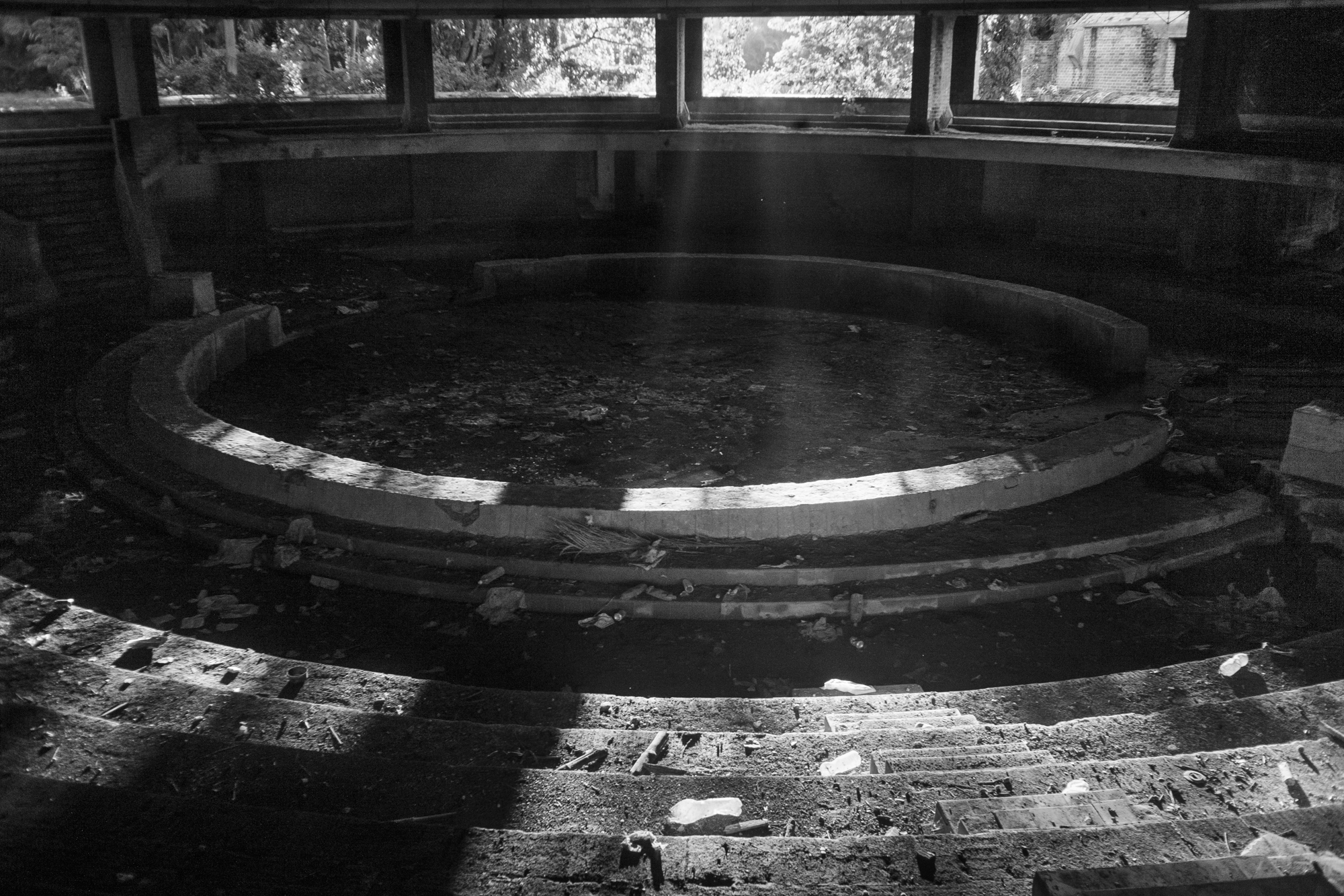 Las fastuosas cúpulas de la Escuela de Ballet, enlazadas por umbrías galerías cargadas de sugestivo futurismo, son de un atractivo apabullante. Para sorpresa de quienes ya conocimos sus ruinas en un estado de abandono y depredación tan avanzado, descubrir que hay imágenes que la muestran con todos sus vanos cubiertos por ventanas y parasoles es sencillamente demoledor. En ninguna cabeza cabría la inquietante idea, no ya de impedir su finalización, sino de permitir el posterior deterioro de una inversión tan lujosa como costosa. Ya que la máxima autoridad danzaría de la isla le había hecho el feo a tal exquisitez, en algún momento a alguien se le ocurrió la aberrante idea de transfigurar aquel entorno en una academia de circo a la usanza soviética, objetivo que por diversas razones no llegó a sistematizarse; aunque, a las diez de últimas, hubiese sido preferible antes que al olvido. Como las desgracias no viajan solas, la naturaleza cerró filas con la estupidez humana, cuando las aguas crecidas del Quibú comenzaron a frecuentar los abandonados salones sobre los que nunca se flexionó un relevé o un demi plié, desmadre que pudo haberse corregido con una simple domesticación del curso fluvial.