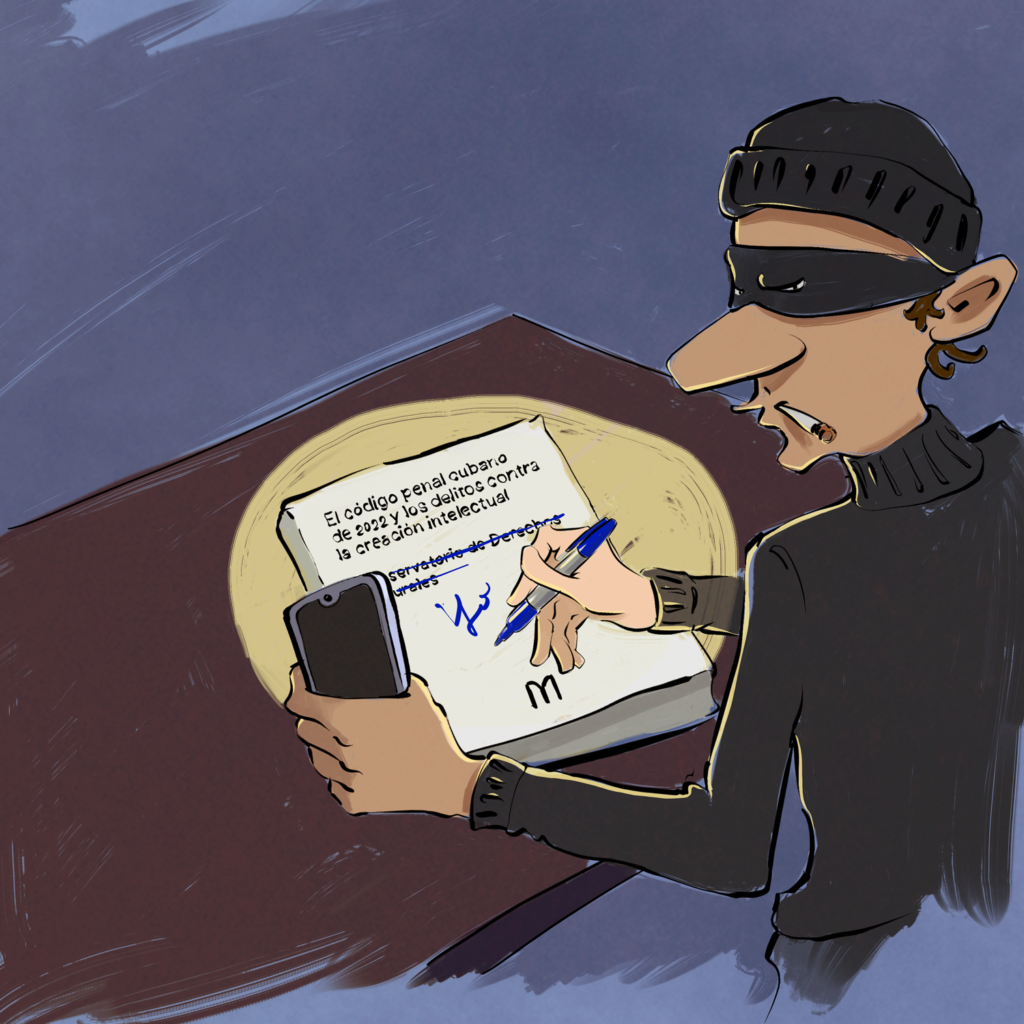 Hemos revisado cada uno de los artículos de la Ley 154/2022, “De los Derechos del Autor y del Artista Intérprete”. Incluimos en nuestro estudio, igualmente minucioso, dos de sus leyes complementarias. El Decreto 74/2022 del Consejo de Estado y la Resolución 65/2022 del Ministerio de Cultura. Había quedado pendiente hablar de otra normativa cubana relacionadas con el tema a partir de una mención hecha en las disposiciones finales de la ley. Nos referiremos entonces, al Código Penal.