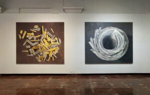 Dos obras en la exposición Confundiendo el lunes con el domingo (galería Servando, La Habana), de Nelson Jalil (imagen tomada de Hypermedia Magazine).